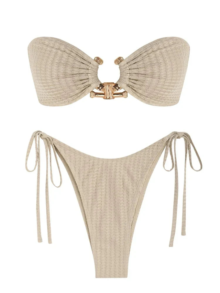 O Biquíni Com Laço Cora da Zayle combina delicadeza e sensualidade em uma peça única. Seu design elegante, com detalhes de laços que realçam o visual, é perfeito para quem deseja um toque feminino e moderno. Com um ajuste perfeito ao corpo, o biquíni conta com cintura baixa e é confeccionado em materiais leves e resistentes, garantindo conforto durante os dias de sol na praia ou piscina. A ausência de aro proporciona liberdade de movimento, enquanto os bojos removíveis oferecem sustentação extra.
