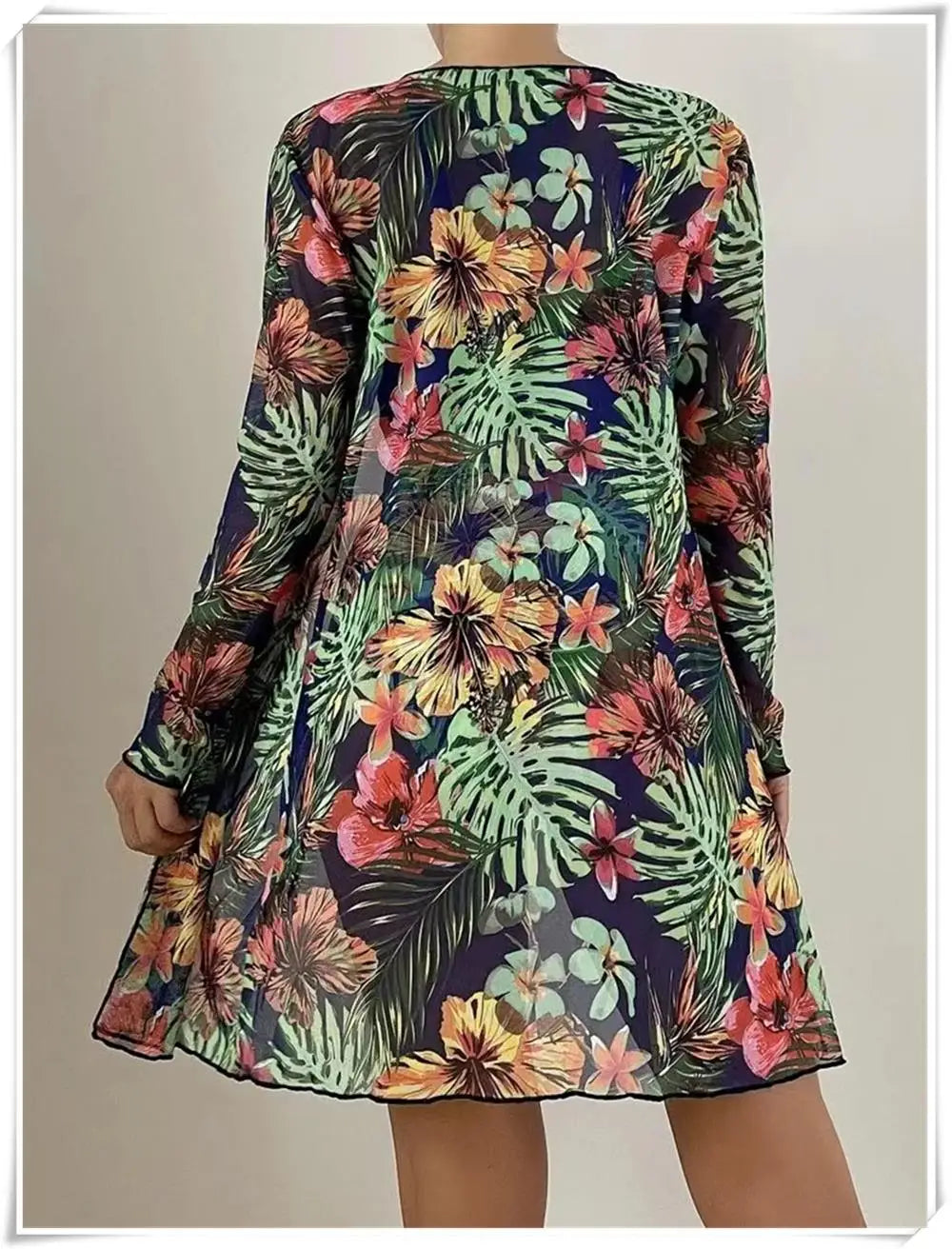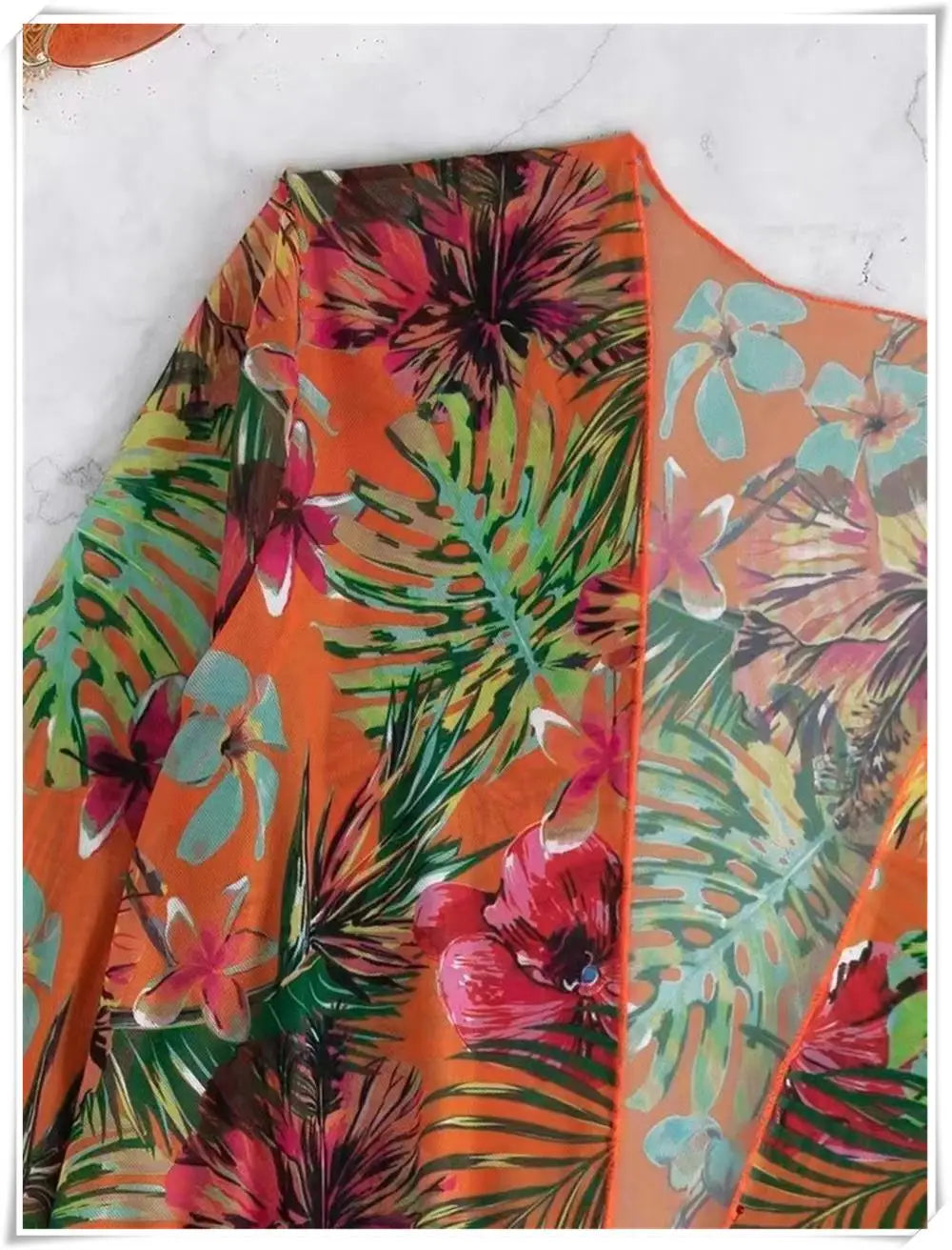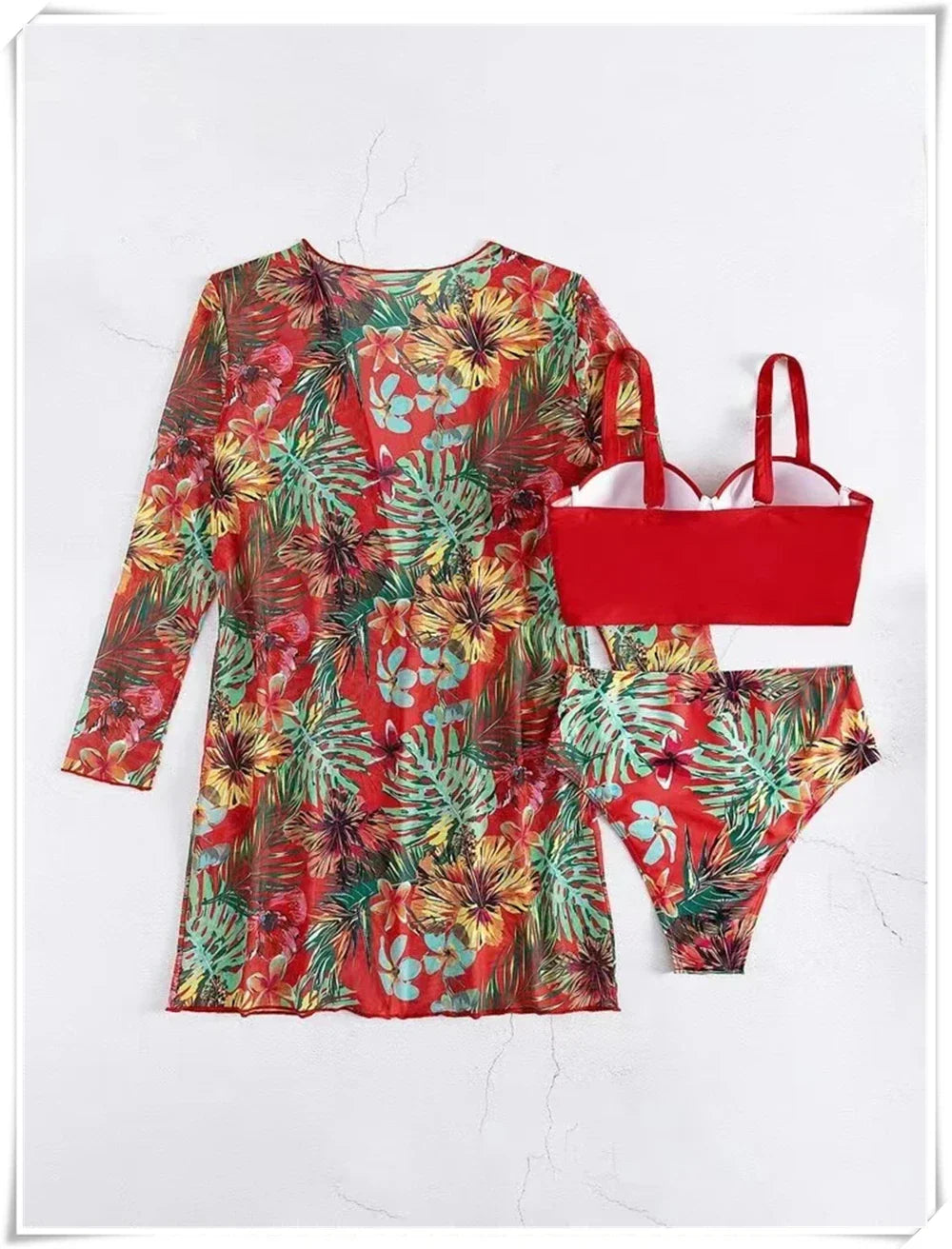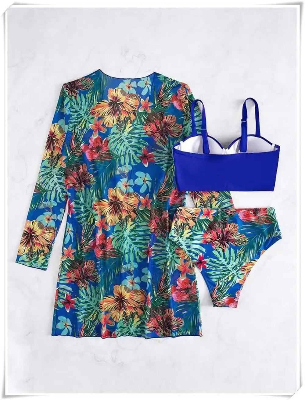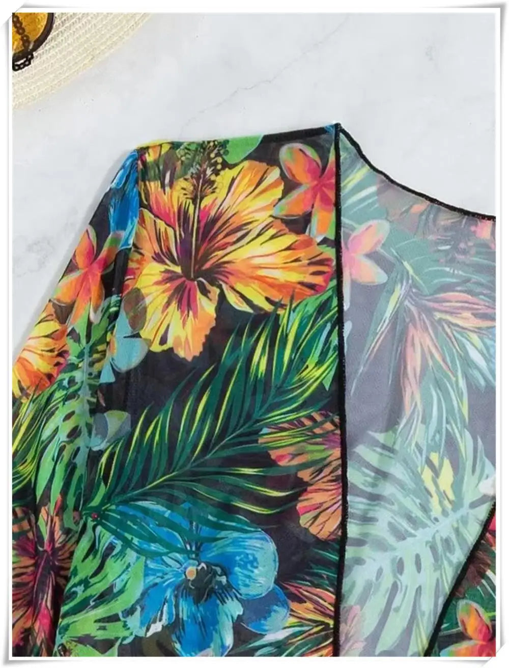 • Conjunto 3 em 1: Inclui top, calcinha de cintura alta e capa leve, proporcionando versatilidade.