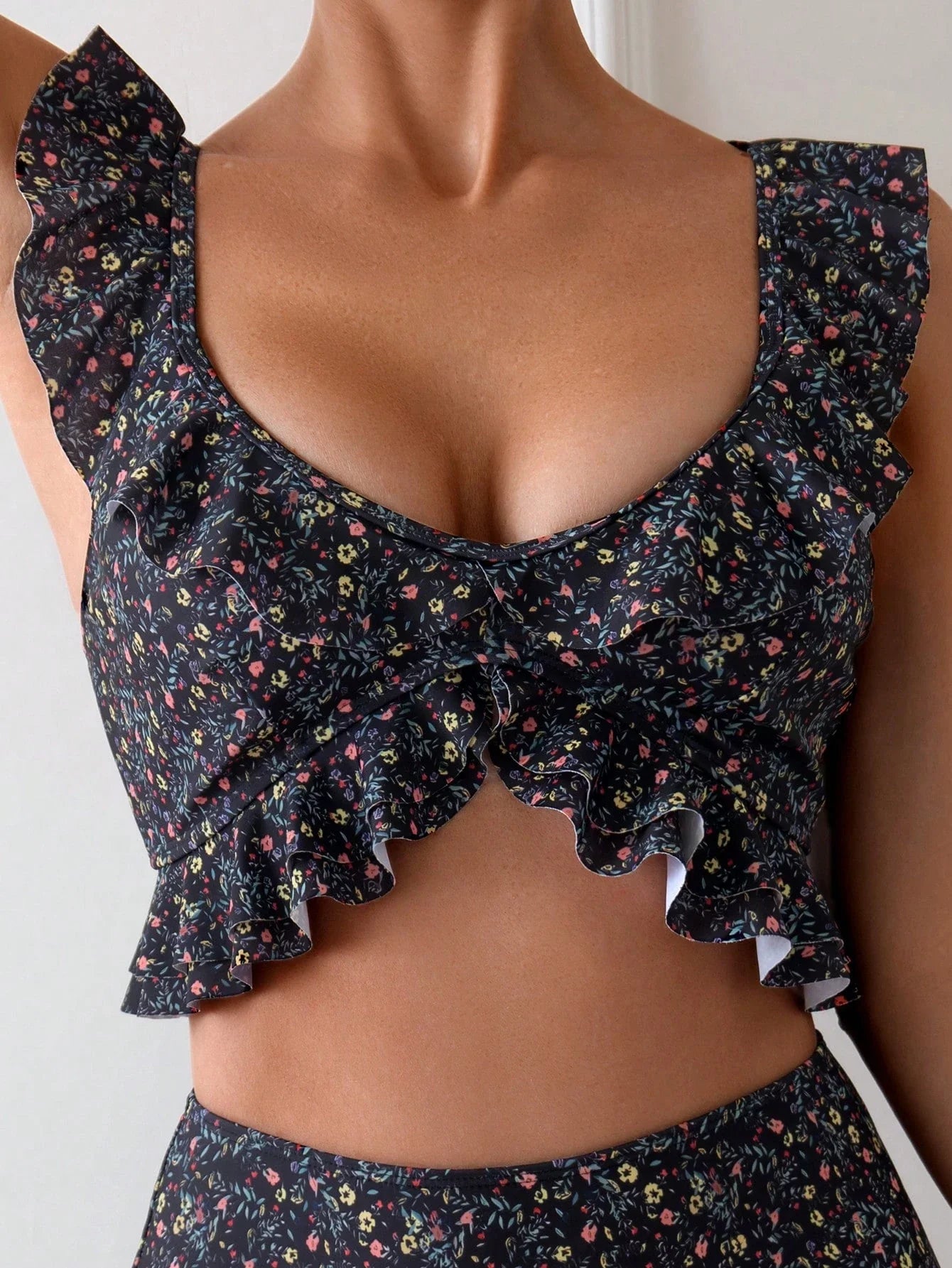 ✅ Conjunto fofo e romântico com estampa de plantas e florzinhas, perfeito para praia