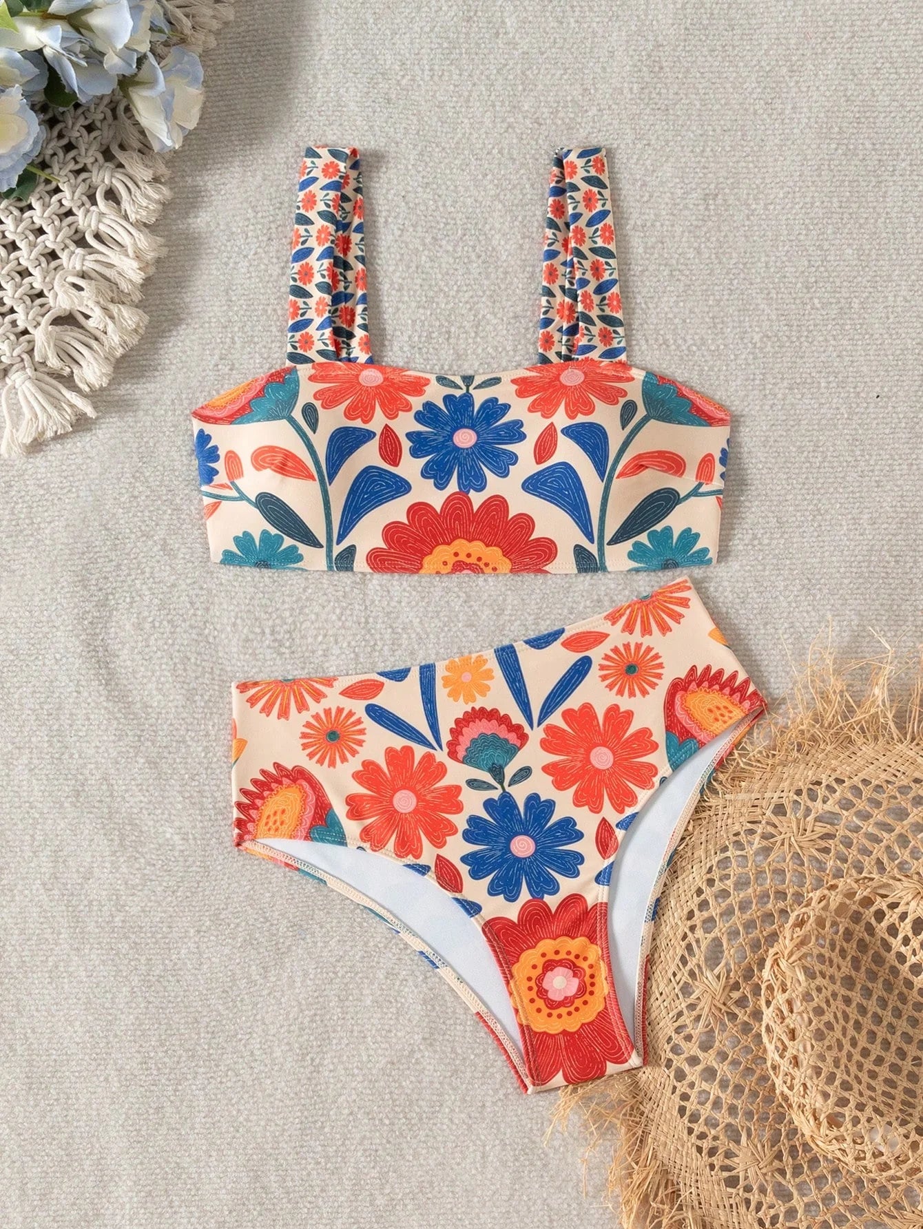 ✅ Biquíni multicolorido com estampa total de plantas