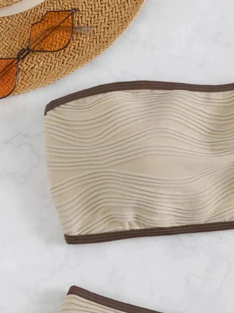 O modelo sem aro proporciona um ajuste natural e confortåvel, enquanto as copas com bojo garantem suporte extra, moldando o busto de forma suave. Seja para relaxar à beira-mar ou aproveitar uma tarde na piscina, o Biquíni Raelynn vai se tornar sua peça favorita do verão.