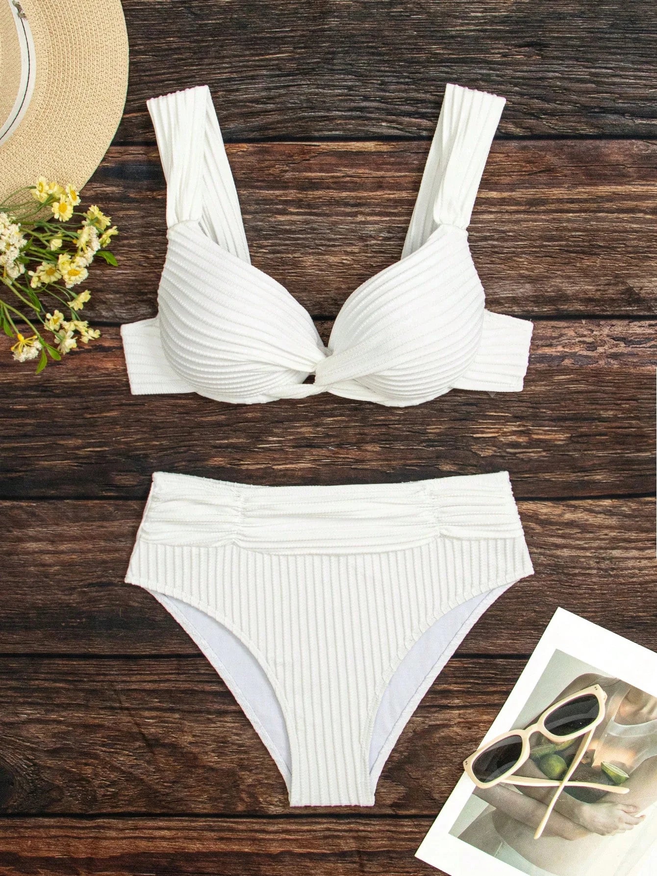 ✅Design elegante e sofisticado:Modelo com detalhes enrugados, torcido e peça em V, trazendo um visual moderno e diferenciado.