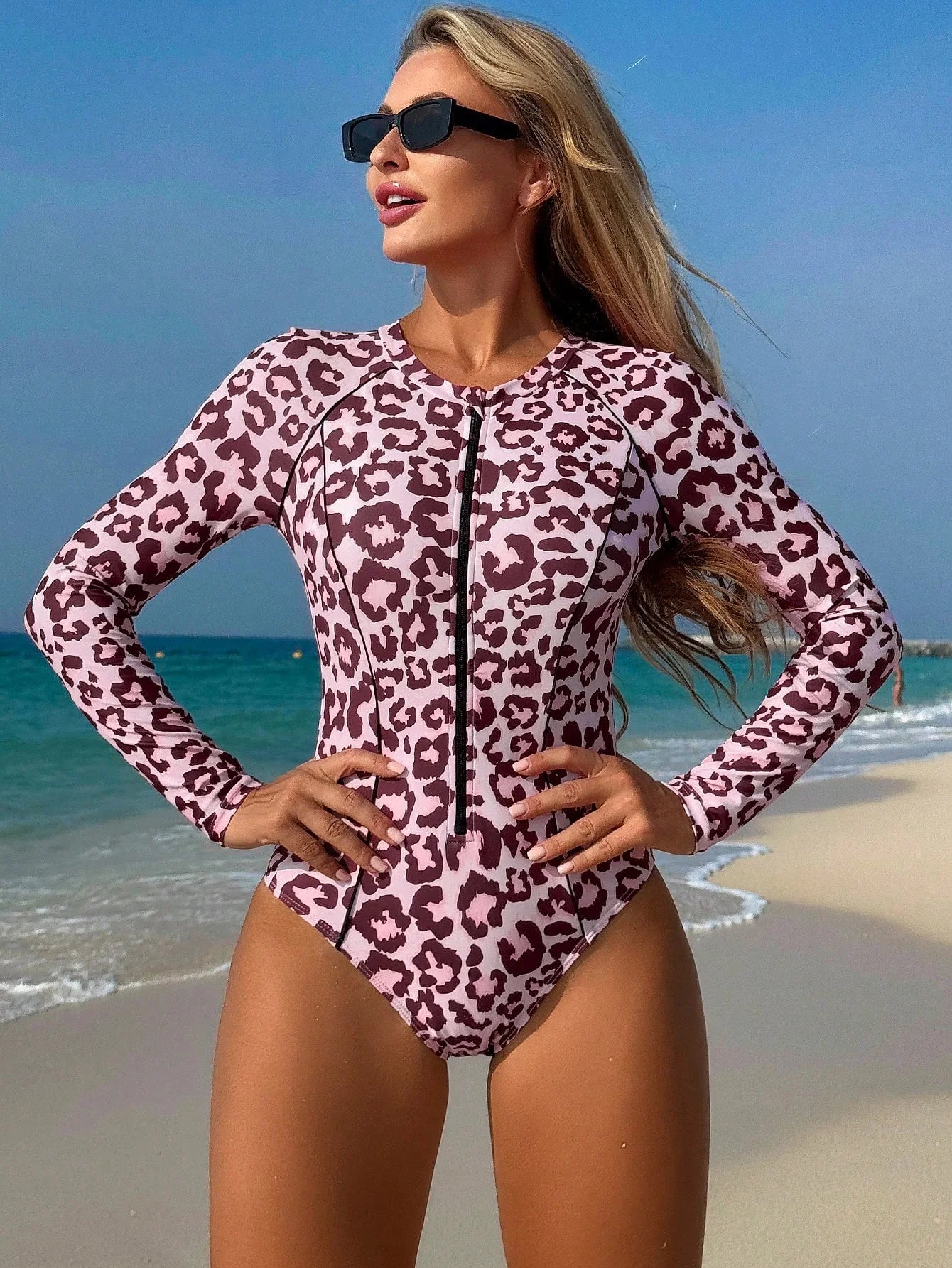 ✅ Conjunto esportivo casual com estampa de leopardo e padrão texturizado