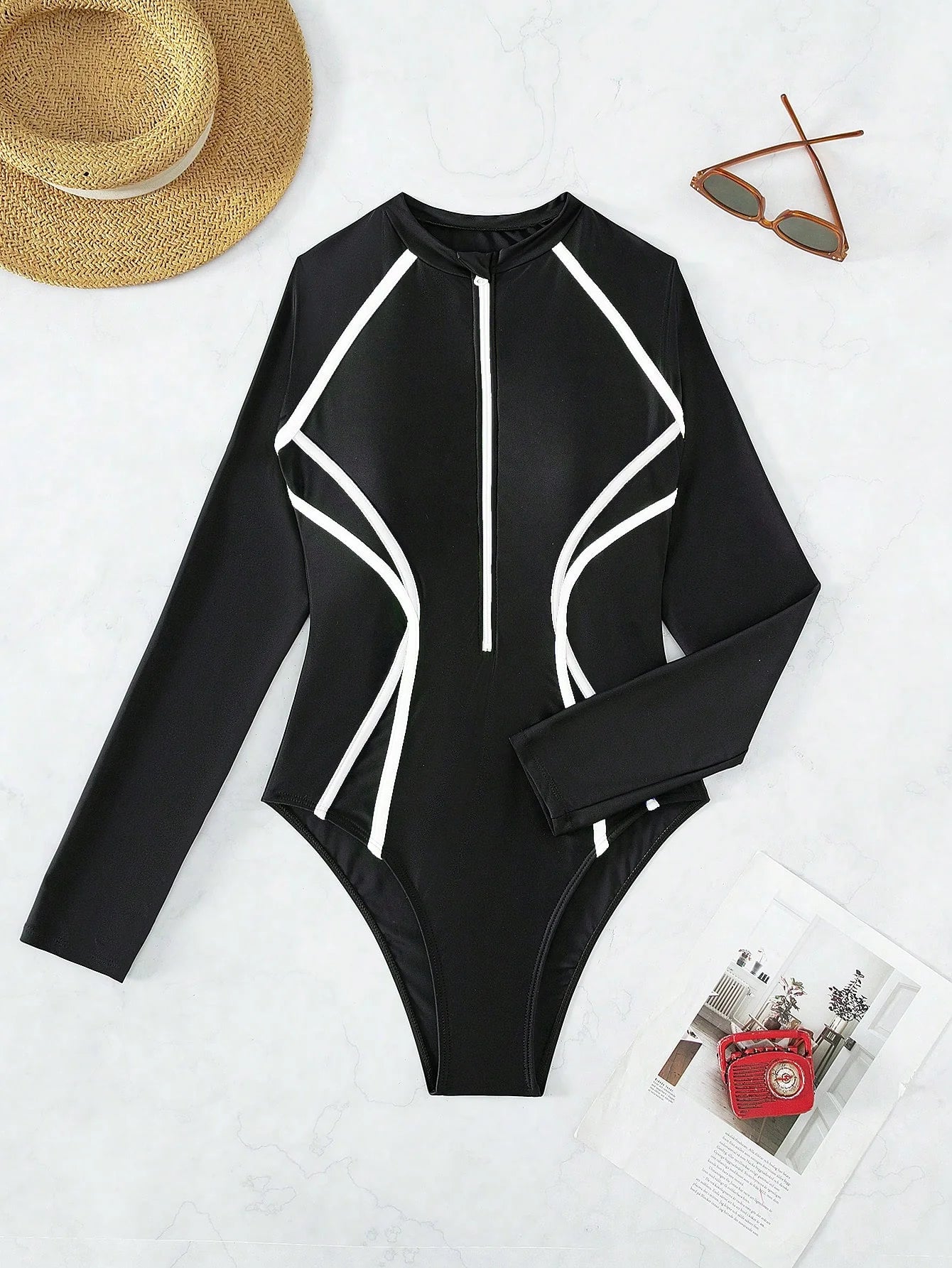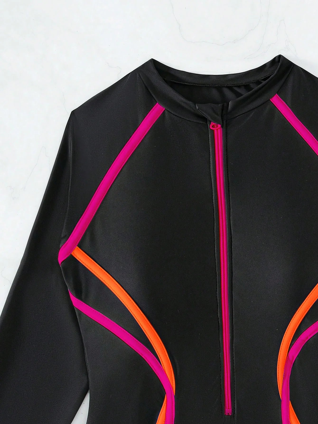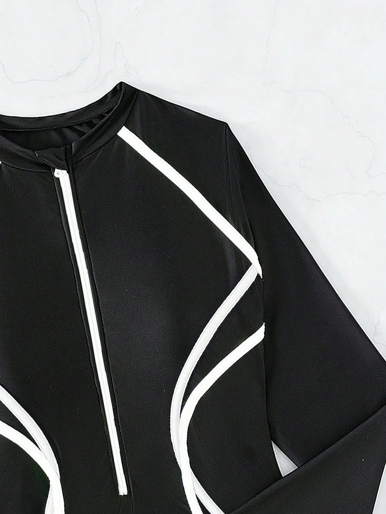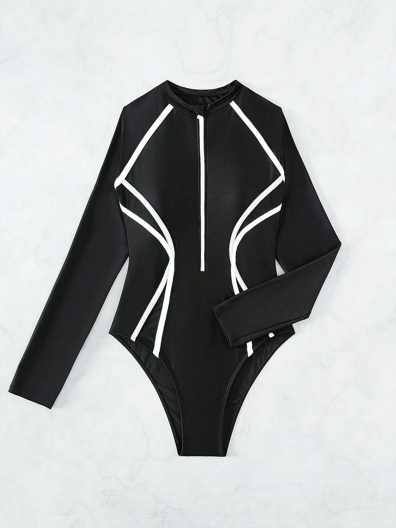 ✅ Zíper frontal e cintura contrastada que valorizam a silhueta