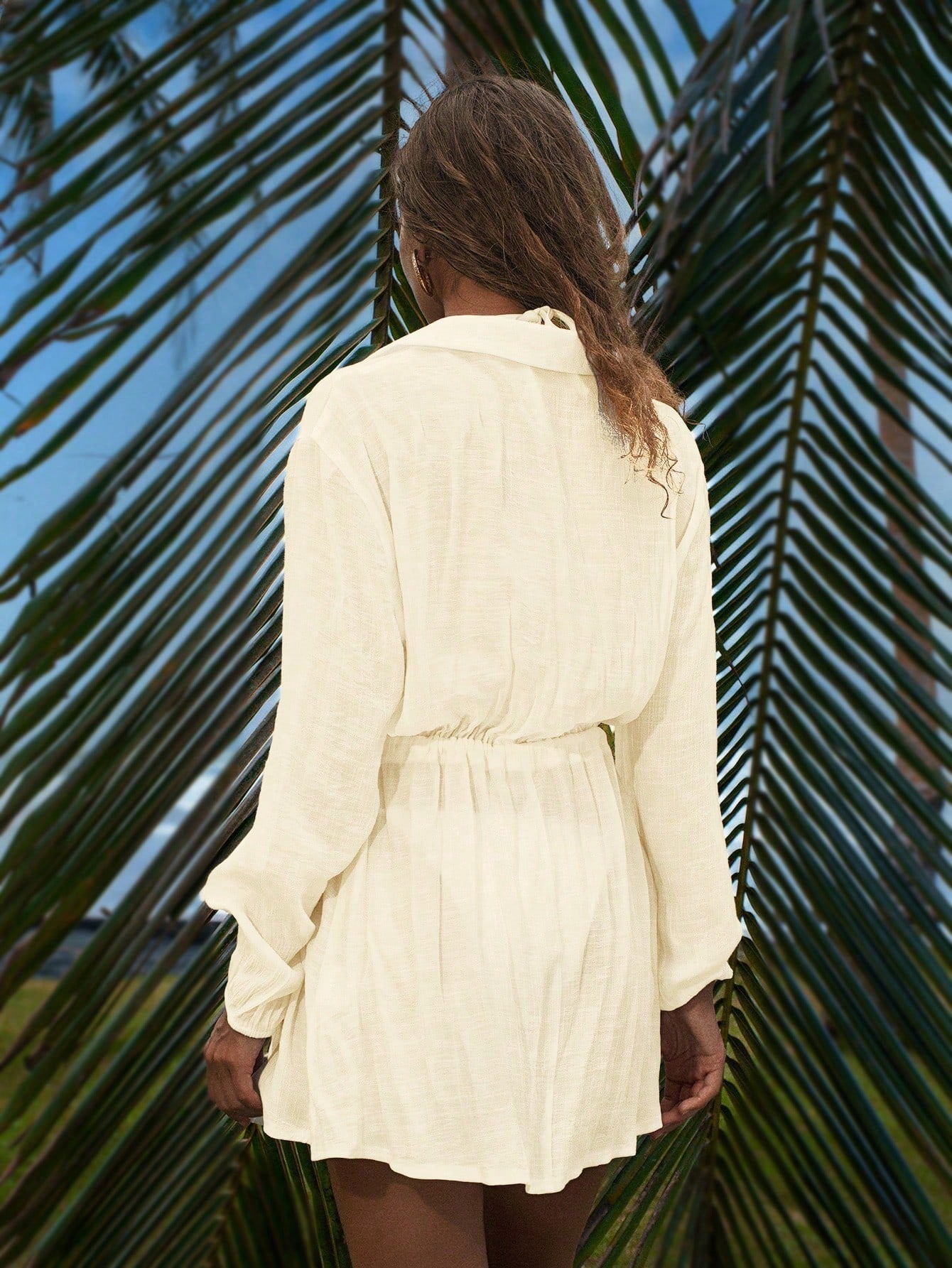 Detalhes: Nó frontal, transparência sutil e botões na parte frontal