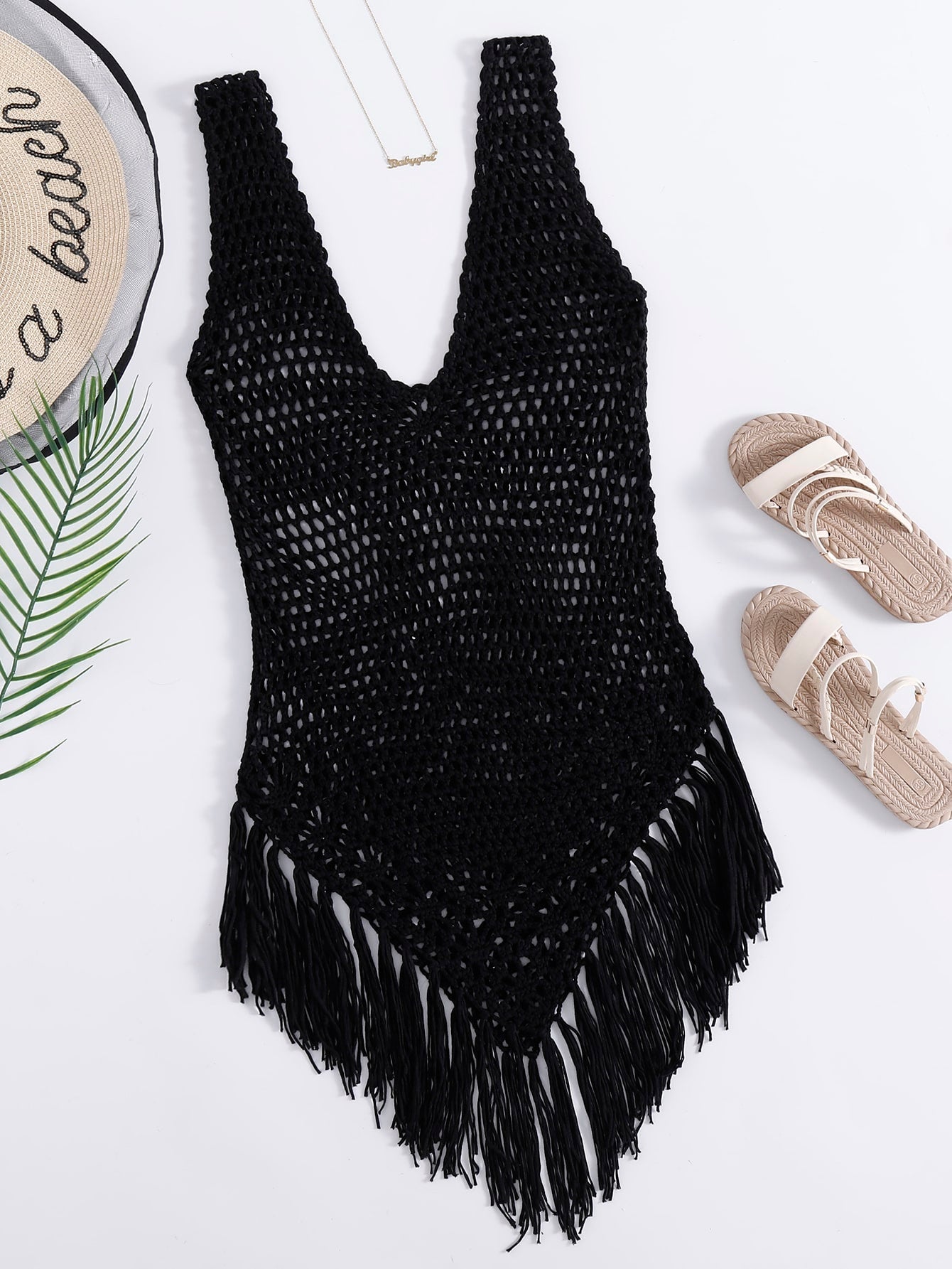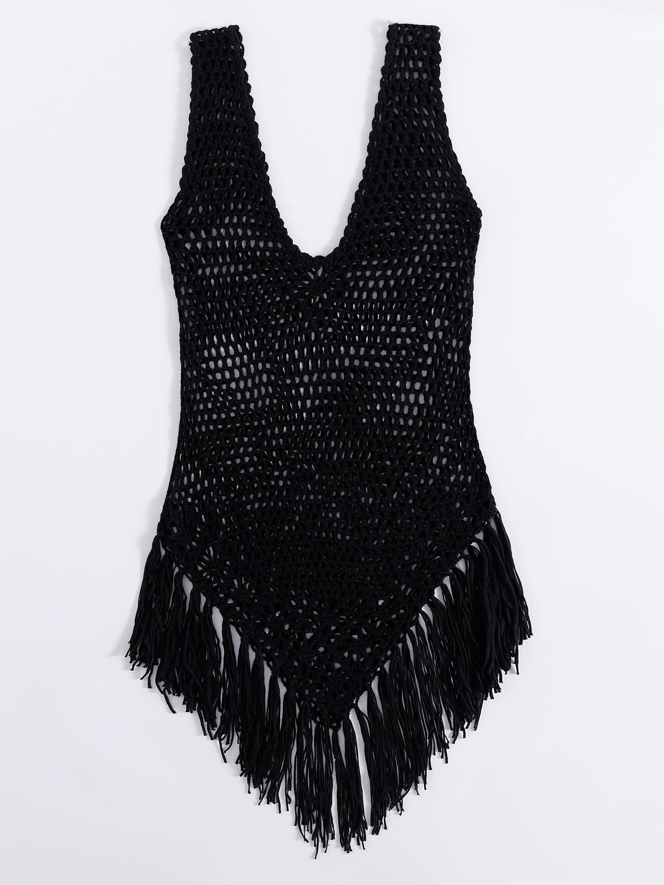 Detalhes: Assimétrico, com franjas e transparência sutil