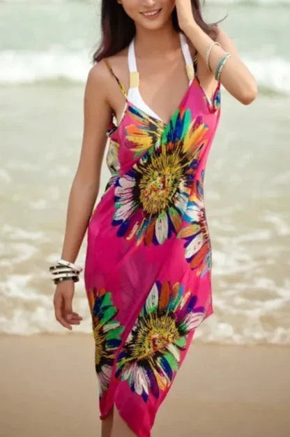 A Saída de Praia Lauryn é ideal para quem procura praticidade e estilo nos dias de praia. Confeccionada em poliéster, ela oferece leveza e um toque suave, perfeito para manter o conforto durante todo o verão. Com um design jovem e estampado, essa peça funciona como um vestido de praia versátil, podendo ser usada como cobertura sobre biquínis ou maiôs, ou como saia pareô. O modelo possui alças no estilo sling e um caimento aberto nas costas, proporcionando um visual sensual e moderno. É uma peça que valoriza o corpo com elegância, sem abrir mão da simplicidade e frescor.